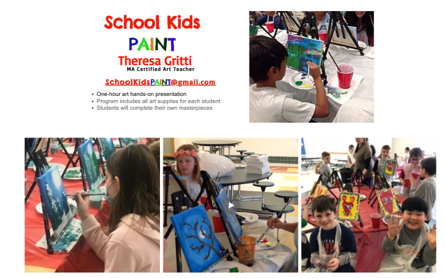 We offer a proven, unique painting program for schools. This program has been well received by students, teachers and administrators. Several schools and PTAs have used our School Kids Paint package as end-of- term celebrations, Family Paint Night fundraisers, and imaginative re-enforcement on integration for core curriculums.